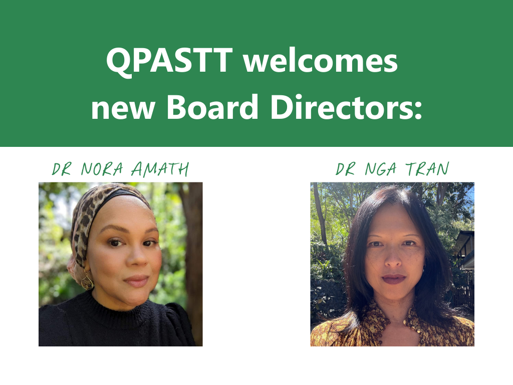 QPASTT is proud to welcome two exceptional leaders to our Board of Directors: Dr Nora Amath and Dr Nga Tran. Their appointments, endorsed at our recent Annual General Meeting, bring…