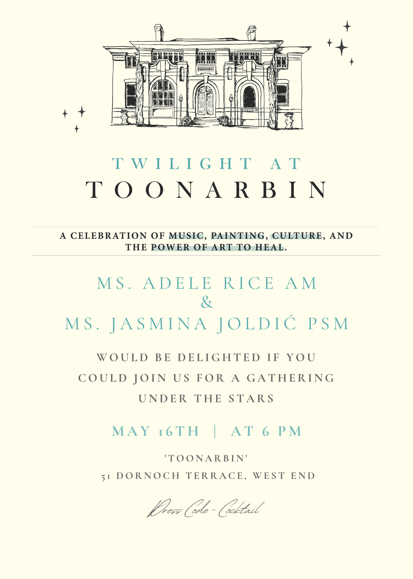 For one magical night, Allen Hunter and Carmel Dyer, the custodians of Toonarbin, will graciously open their magnificent home for this unique event which brings art, music and culture together in a truly intimate and exclusive setting.